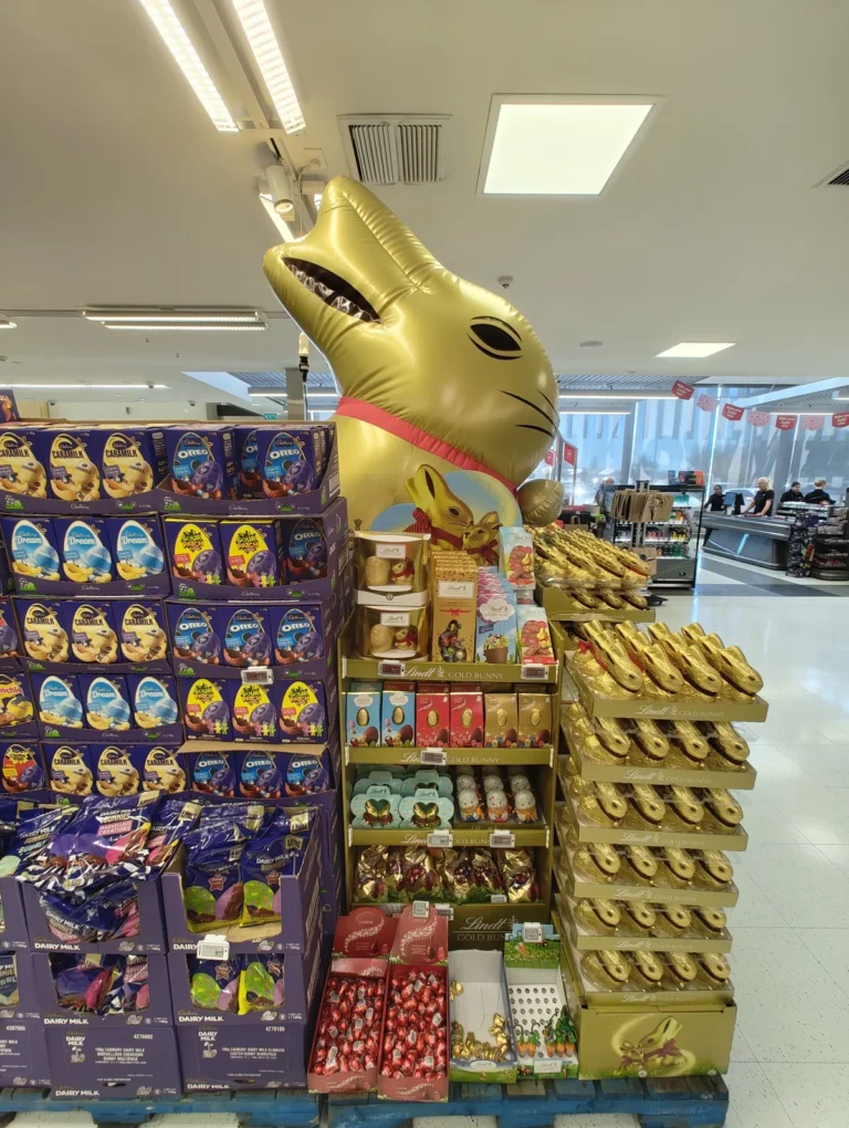 最近スーパーに行ったときも、大きなうさぎの飾りが置いてありました。イースターが近づくと、お店にはうさぎや卵の形のチョコレートがたくさん並びます。